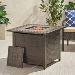 Aidan Outdoor 50000 BTU Light Weight Concrete Square Fire Pit Dark Gray – Christopher Knight Home