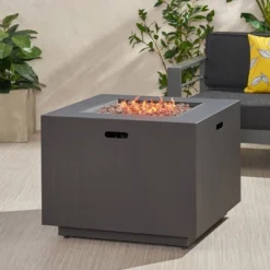 Mia Outdoor Wood Burning Lightweight Concrete Square Fire Pit – Gray – Christopher Knight Home