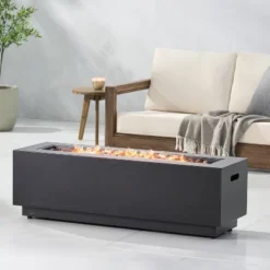 Wellington Outdoor 50000 BTU Rectangular Fire Pit With Concrete Finish – Christopher Knight Home