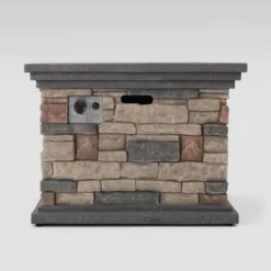 Bedrock 3pc Faux Wicker Chat Set With Fire Pit – Brown/Beige – Christopher Knight Home