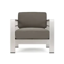 Aviara 5pc Aluminum Chat Set With Fire Pit – Silver/Khaki And Light Gray – Christopher Knight Home