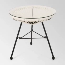 Java 3pc Faux Rattan Modern Chat Set – White – Christopher Knight Home