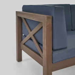 Brava 3pc Acacia Modular Loveseat And Table Set – Teak/Blue – Christopher Knight Home