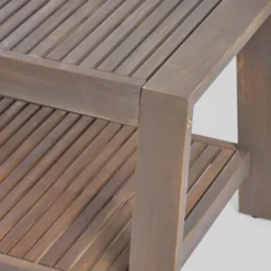 2pc Grenada Acacia Wood Patio Chat Set With Sunbrella Cushions Gray/Navy – Christopher Knight Home