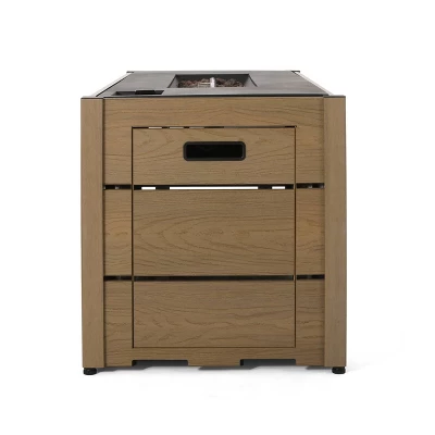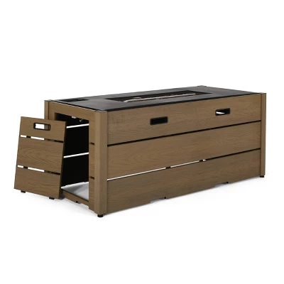 Set up a centerpiece in your backyard with warm, gentle lighting that’s worth remembering. With 40,000 BTU, a rectangular structure of smooth lightweight concrete, and an outstanding wood resin base, this piece not only offers an incredible upgrade in style but is also perfect for parties due to its easy seating arrangement and built-in tank holder. From intimate conversations around a cozy fire to stargazing on cool summer nights, our wonderful fire pit will have no trouble gathering everyone together for hours of quality time.