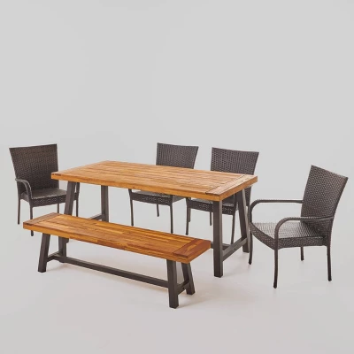Cooper 6pc Acacia Wood And Wicker Dining Set – Brown – Christopher Knight Home