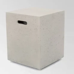 FIRE PIT WITH TANK HOLDER: This fire pit is constructed with lightweight concrete for a minimalistic yet modern vibe. The shape allows easy seating arrangement for you and your guests, providing light and warmth all around during those chilly evenings. This comes with a matching tank holder to keep your propane tank inconspicuous.