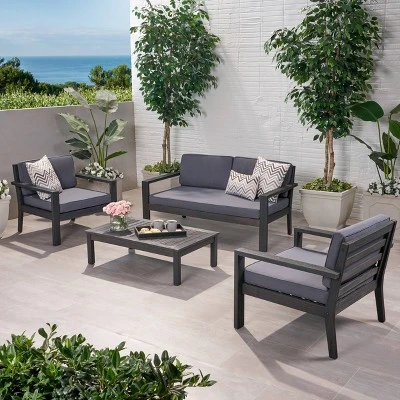 Santa Ana 4pc Gray Acacia Wood Conversation Set – Christopher Knight Home