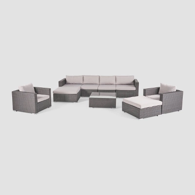 Whether you are entertaining guests or just enjoying a cozy weekend with your family, you now have ample space to sit and relax all together outside. This Christopher Knight Home Santa Rosa 9 Pc All Weather Wicker Patio Chat Set offers soft outdoor cushions that are both classy and water resistant. This generous set adds the perfect elegance to your outdoor space. Create a comfortable outdoor seating area on your patio with this Christopher Knight Home Santa Rosa 9 Pc All Weather Wicker Patio Chat Set.