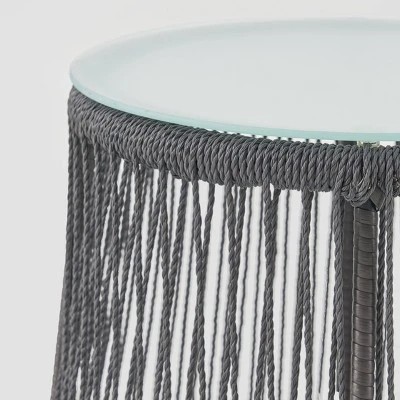 The perfect boho accent to any patio collection, this Christopher Knight Home Southport Steel and Rope Side Table is a unique combination of naturally-textured rope and a rugged iron frame. The natural texture of the rope siding contrasts boldly with this piece’s sleek tempered glass top. This versatile selection can serve as a rustic endcap for your favorite outdoor sofa or as a shared place to chat over hot coffee. Lighten up your current set-up with this chic and boho accent.